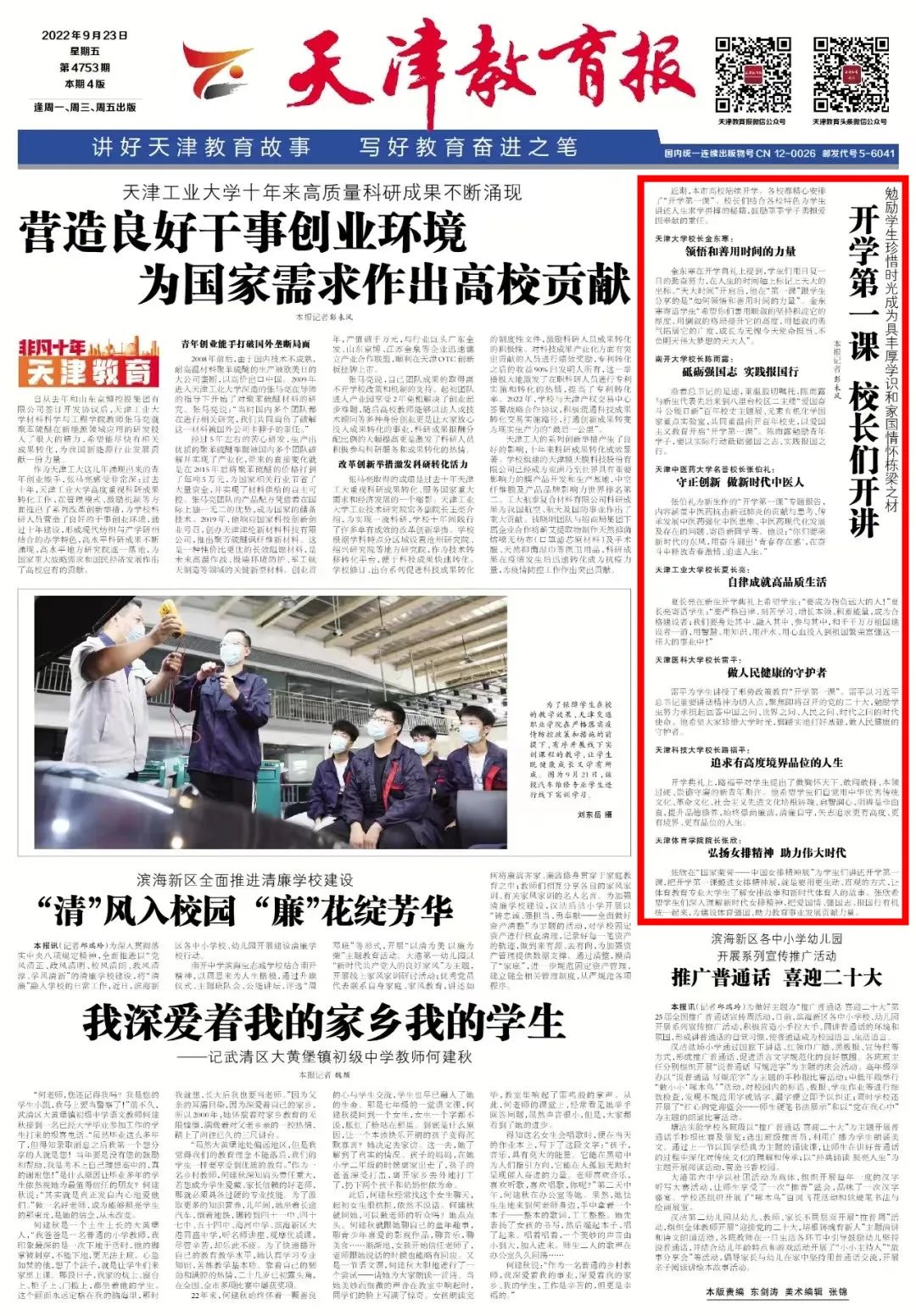 9月23日,《天津教育報》頭版報道我校新學期開學第一課,現全文轉載。