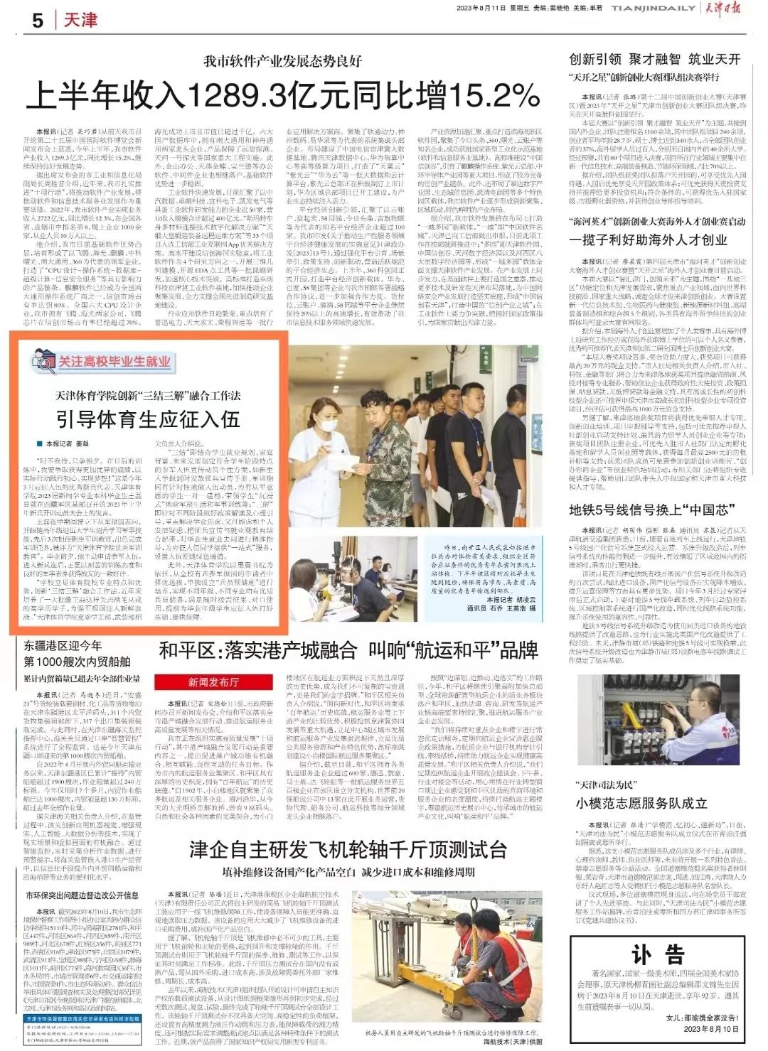 日前,《天津日報(bào)》以“關(guān)注高校畢業(yè)生就業(yè) 天津體育學(xué)院創(chuàng)新‘三結(jié)三解’融合工作法 引導(dǎo)體育生應(yīng)征入伍”為題,報(bào)道我校立足體育院校專業(yè)特點(diǎn)和優(yōu)勢,創(chuàng)新“三結(jié)三解”融合工作法,近年來培養(yǎng)了一大批矢志攜筆從戎的高學(xué)歷學(xué)子,為強(qiáng)軍報(bào)國注入新鮮血液。現(xiàn)全文轉(zhuǎn)載。