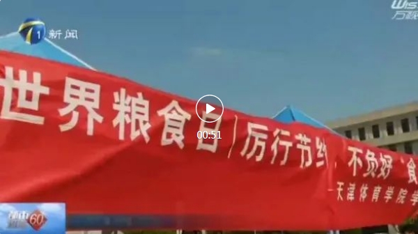 2023年10月16日,在第43個世界糧食日來臨之際,我校開展“厲行節約,不負好‘食’光”系列活動,呼吁廣大師生愛糧節糧,營造了濃厚的“厲行節約、反對浪費”校園氛圍。天津電視臺《都市報道60分》欄目對此進行了報道。