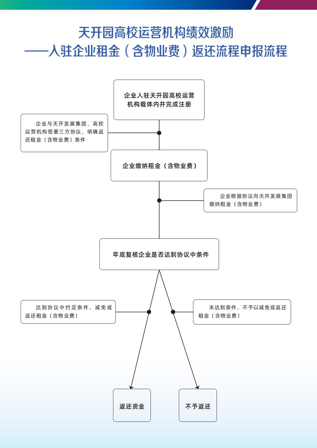 【一圖讀懂】17.天開園高校運營機構(gòu)績效激勵實施細則(試行)——入駐企業(yè)租金(含物業(yè)費)返還流程