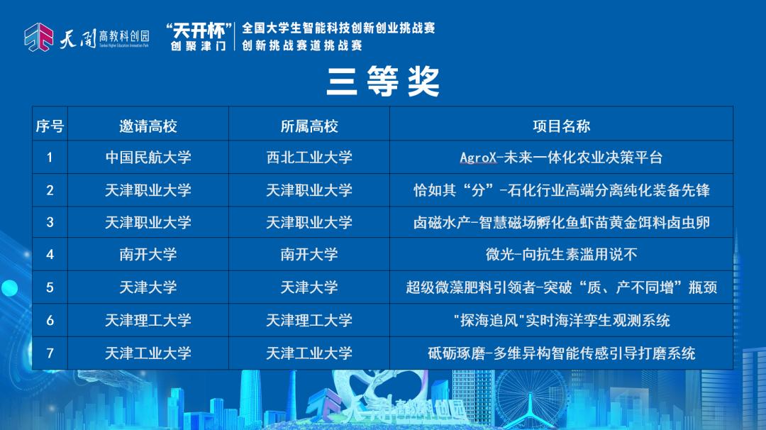 5月14日,“天開杯”創(chuàng)聚津門全國大學生智能科技創(chuàng)新創(chuàng)業(yè)挑戰(zhàn)賽創(chuàng)新挑戰(zhàn)賽道總決賽在天開園舉行,由天津理工大學承辦。