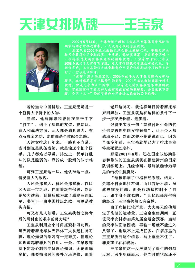 王寶泉——天津女排隊魂(轉自校友通訊第一期)