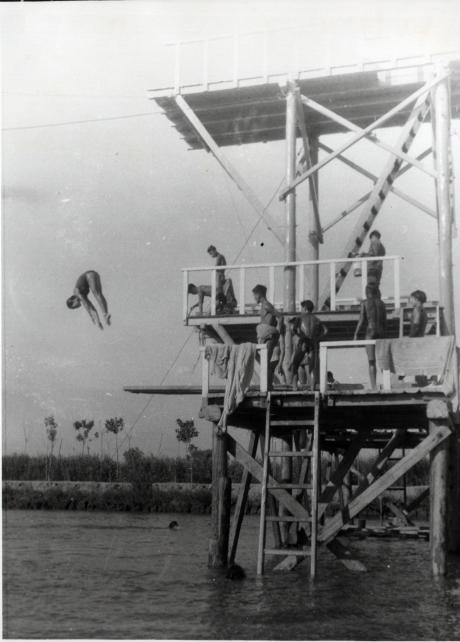 1959年,為備戰(zhàn)第一屆全運會,我院游泳運動員在自己搭建的跳水臺訓練